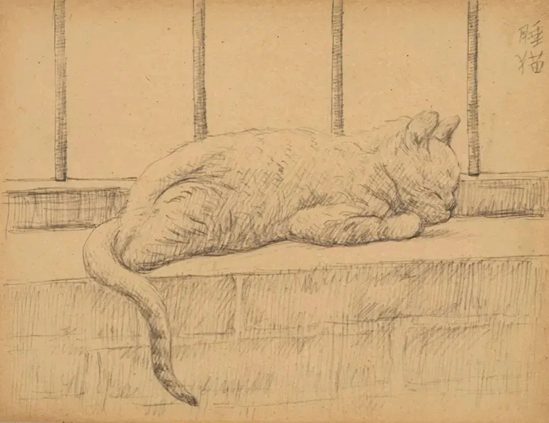 睡猫 | 胡根天 | 20.5x26.5cm | 纸本铅笔 | 20世纪30年代 | 私人藏