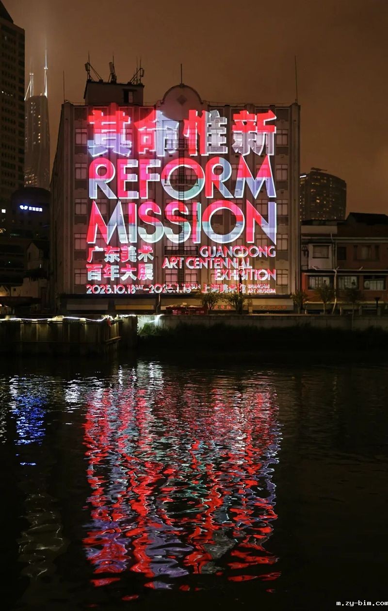 作为本次“其命惟新——广东美术百年大展”启幕的预热活动,在第二届上海国际光影节期间每天18时至22时,苏州河畔的“闪亮·上海 静安光影季”上演了广东美术名家名作光影秀,吸引众多市民、游客驻足观看。
