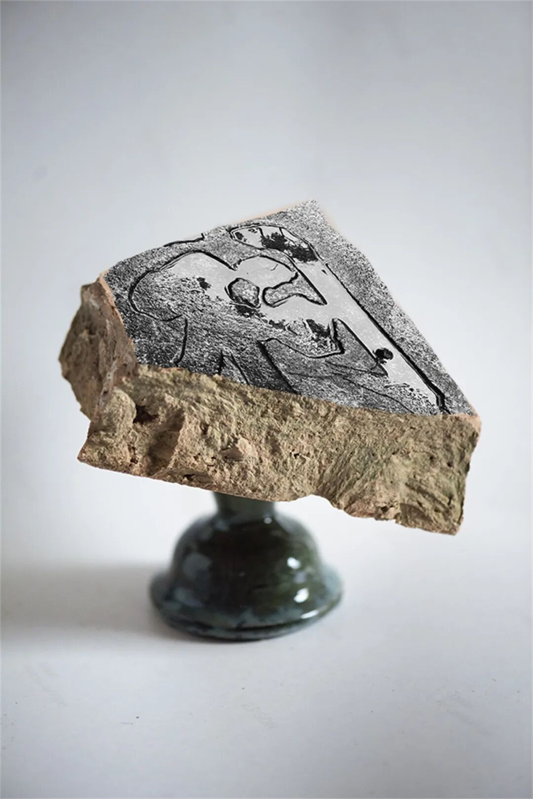 丘的创作坚持将摄影与实物材料结合: 观众面对的不仅是关于废墟的影像,更是废墟物质的直接在场——触觉性、重量感、质地差异无法被数字图像替代。收集、清洗、组合、拍摄、手绘——这些劳动密集型过程使作品沉积着艺术家的身体记忆,抵抗着算法生产图像的即时性。这两组作品不是对前工业时代的怀旧,而是在数字化与全球化的当下,重新思考物质的能动性与艺术实践的生态责任。