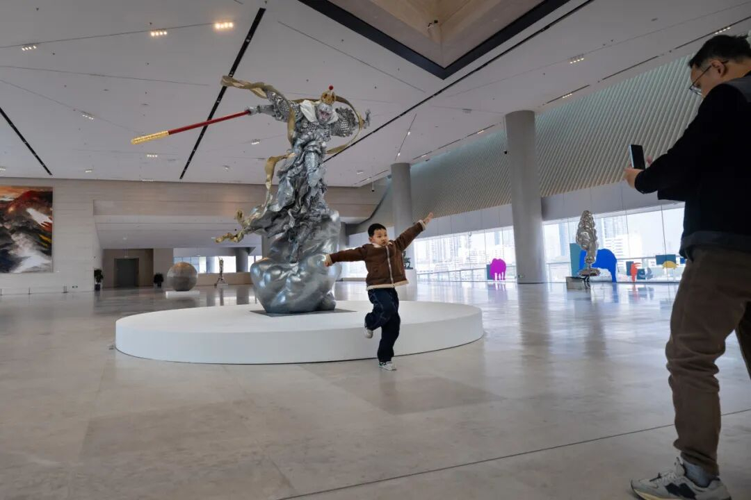 作品《大圣》是对中国古典文学名著《西游记》中孙悟空的独特演绎,以京戏武生经典亮相的反手握棒姿势,尽显孙悟空的英雄气派。这件雕塑作品不只是对这一经典文学形象的再造,更是对中华传统文化的致敬,艺术家借这一形象,传递了对传统文化精神的自豪与自信。