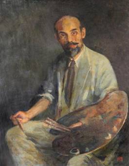 这幅《画家冯钢百像》就是在那个时期创作的。有一种坊间的说法,说当时同住在九龙的冯钢百专门买了油画颜料前往余本的画室,请余本和李铁夫为他造像。于是,就出现了我们看到的余本、李铁夫两位画家同时为冯钢百创作肖像的场景。