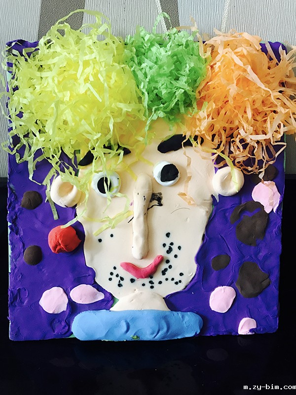 即使不用画笔,我们也有办法为父亲制作肖像画。李奕萱小朋友用轻粘土和彩色碎纸条为父亲创作了一张立体画。杂乱的发型、点点须根、大大的眼睛和高高的鼻子,这幅画让人感到这位父亲充满了活力和童趣。李奕萱妈妈给这幅作品写了这样的说明:“我是李奕萱小朋友,2岁10个月了。爸爸是我心目中的superman,今年父亲节,我用轻黏土作画,给爸爸设计了一个酷酷的发型,我的爸爸好喜欢!”