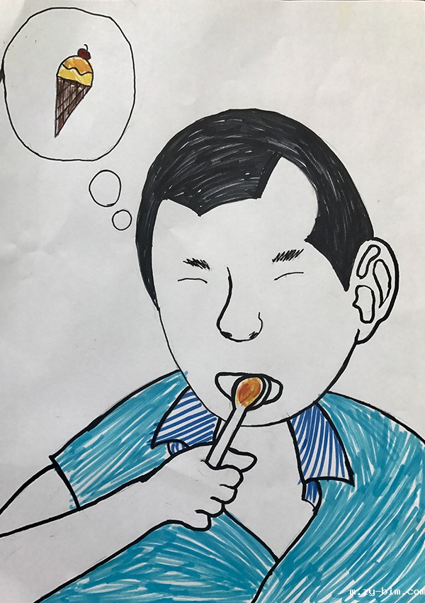 施映彤只写了一句话:“我的爸爸很爱吃雪糕”。