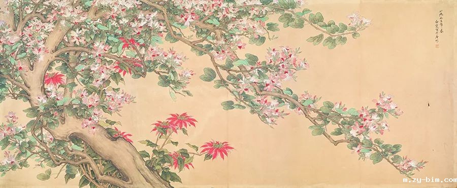 邓白擅长工笔花鸟画,其作品讲格调,重意境,笔墨精纯,气韵生动,能妙夺造化,移鸟语花香于画中。此幅作品画面气势非凡、生机勃勃,充满清丽刚毅、洁净高贵的韵味。