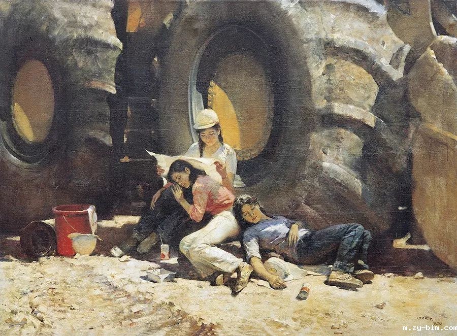 杨培钊认为:《特区(的)正午》是一幅颇为成功的作品。画面刻划的是三个青年女工午餐后休息时情景。一个在看报又担任着警戒任务,二个相互偎依的躺着,背景是一辆现代化的大型机车的轮胎,真大,大到三个人只比上它一只角。从这个局部的细节处理中,可以透见施工的现代化程度和规模。从人物形象,服装特征,阳光和色调中,可以透见典型的环境。三个女工形象塑造很成功,体态极美,动作也不矫揉做作。从形象、服饰、动作举止上能透见她们的文明程度和时代气息。她们热爱劳动,因为她们热爱无限美好的现实生活。他们的工作虽普通又平凡,即在平凡之中寓不平凡之意。美好生活的幸福大厦就是她们这些平凡的普通劳动者的双手建成的,她们无名,然而却是真正的英雄。特区的建设者,美好生活的缔造者们百忙之中的这一小息,又美,又有诗意。