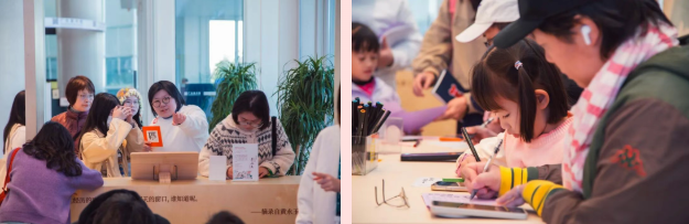 在导览活动之外,工作坊类活动侧重于在创作过程中实现精神世界的丰满。元旦期间的两个工作坊,分别针对亲子家庭和志愿者群体设计,实现了让艺术体验从眼睛到双手,最终沉淀于内心的目标。