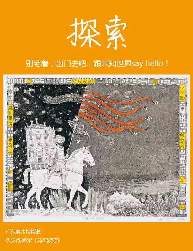 这一期工作坊的创作主题,来自馆藏版画《马可•波罗》。有抽过今年新年艺术签的小伙伴,可能已经见过这位著名的探险家啦!订阅菌每次见到这张画,脑子里都自动补上波罗先生要讲的话:“ 别宅在家里,出门去吧少年!”“ 世界这么大,跟我去看看。”诸如此类啦!传闻马可•波罗17岁时跟随父亲和叔叔,沿陆上丝绸之路前来东方,经两河流域、伊朗高原、帕米尔高原,历时四年,在1275年到达元朝大都(今北京)。他在中国游历了17年,并自称担任了元朝官员,访问当时中国的许多地方,到过云南和东南沿海地区。回意大利后,马可•波罗在一次海战中被俘,在狱中他口述了大量有关中国的故事,其狱友鲁斯蒂谦写下著名的《马可•波罗游记》。《游记》记述了他在东方最富有的国家——中国的见闻,激起了欧洲人对东方的热烈向往,对以后新航路的开辟产生了巨大的影响。