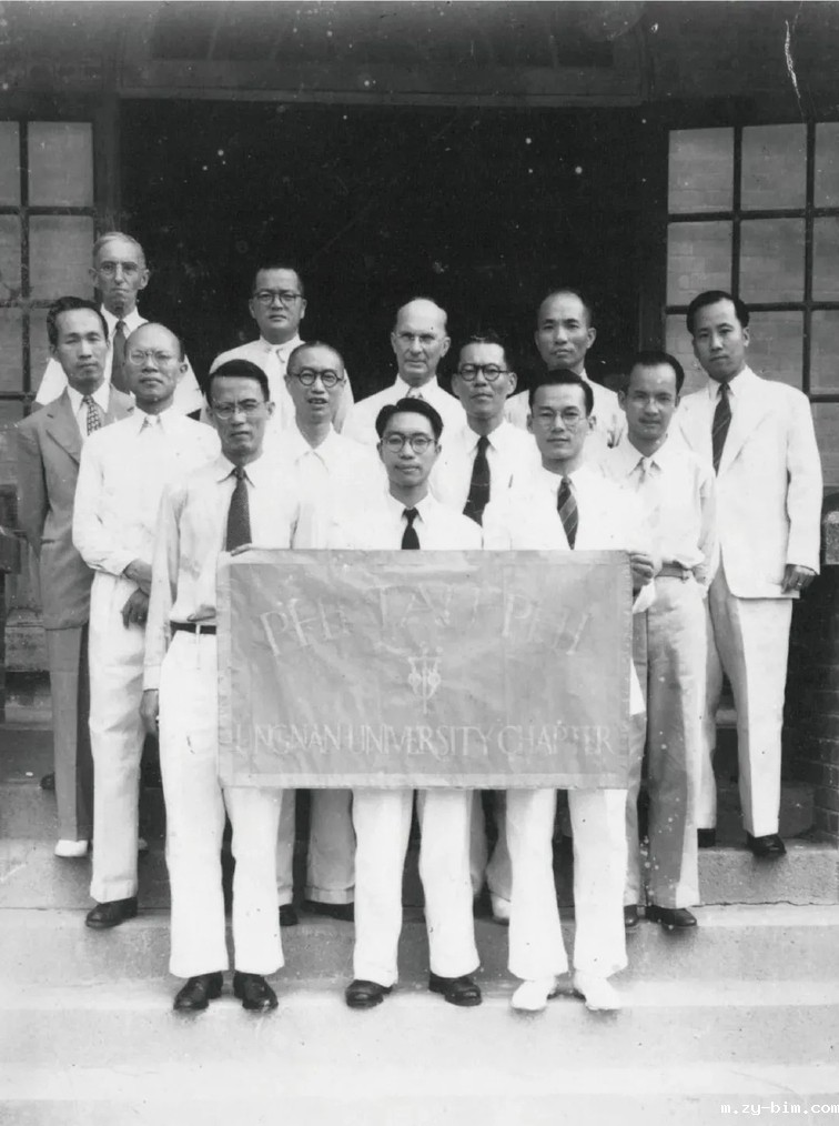 △图四:中华斐陶斐荣誉励学会入学礼,前排正中为黄志坚(1947年)