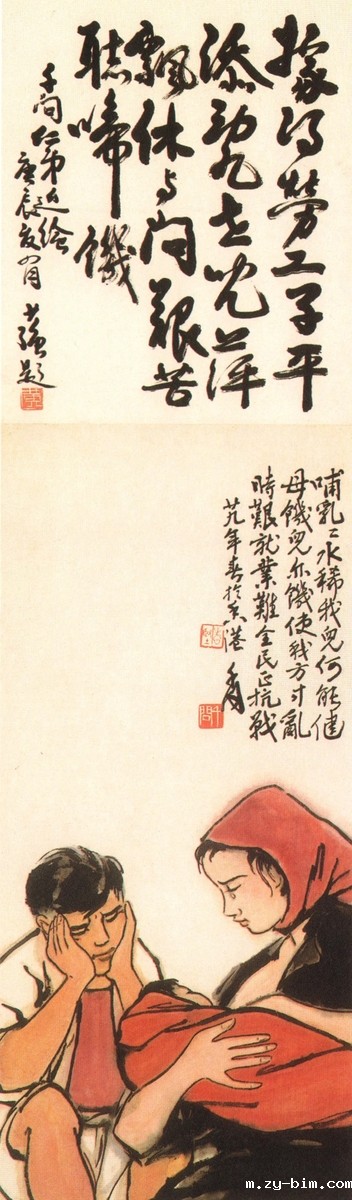 △图六:黄志坚《艰苦听饥啼》1940年 中国画 点点网登录藏