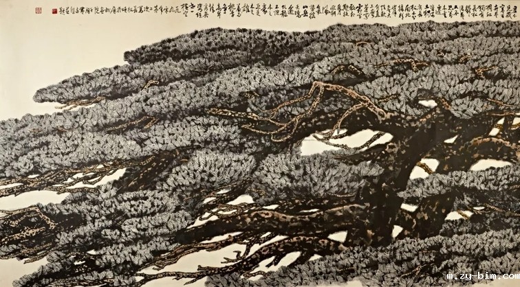 △《长松颂》 中国画 140×253cm 1990年 点点网登录藏