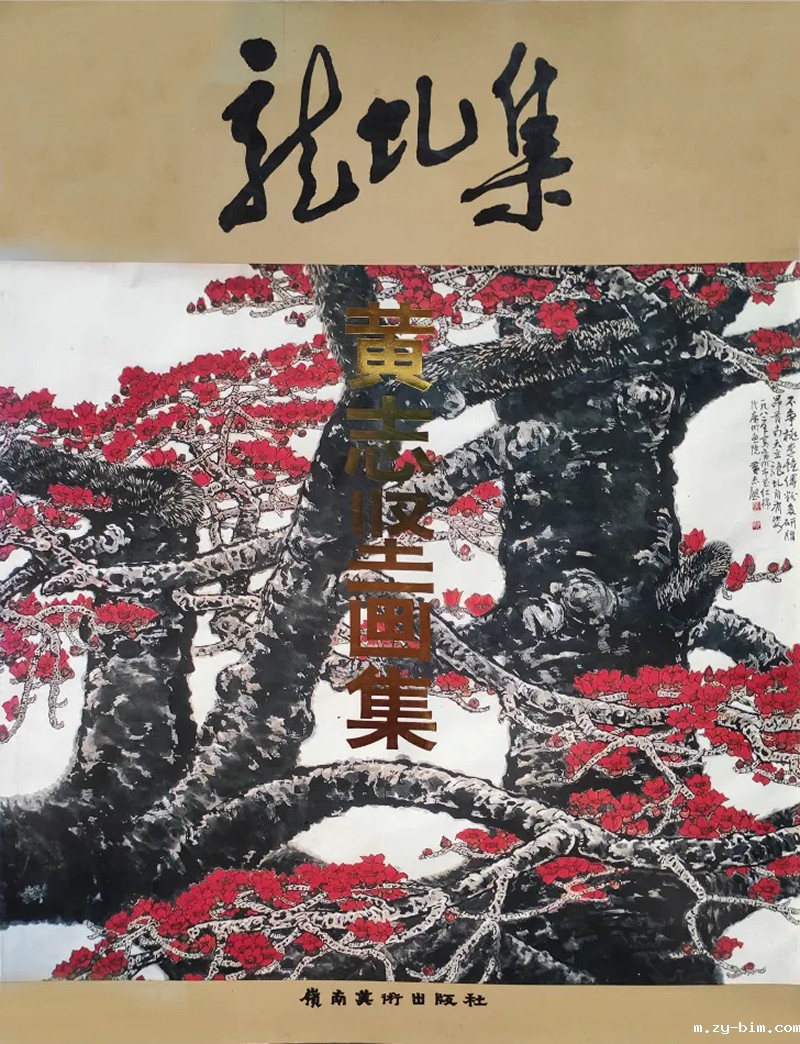 今又打开黄志坚先生的《龙虬集》,让我印象深刻的有:1982年作品《龙虬》,苍劲伟岸的木棉树耸立画面,浓墨造型、黑漆漆像龙虬的树干衬托血红色的红棉花,铮铮铁骨像为欲血奋战的中华英灵树立的纪念碑!画面黄老先生题诗曰:“不争桃李艳,傅粉复研脂。昂首南天立,龙虬自有姿。”