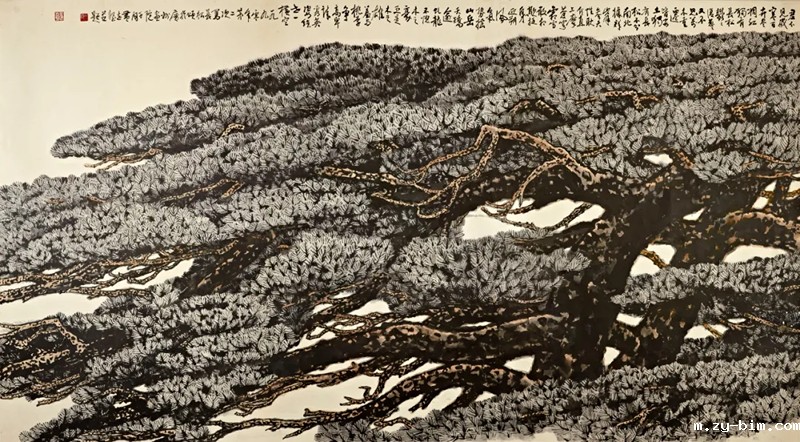 △图七:黄志坚《长松颂》 中国画 140×253cm 1990年 点点网登录藏