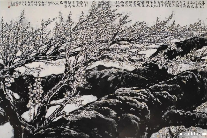△图九:黄志坚《老梅吟》中国画 150x213cm 1989年