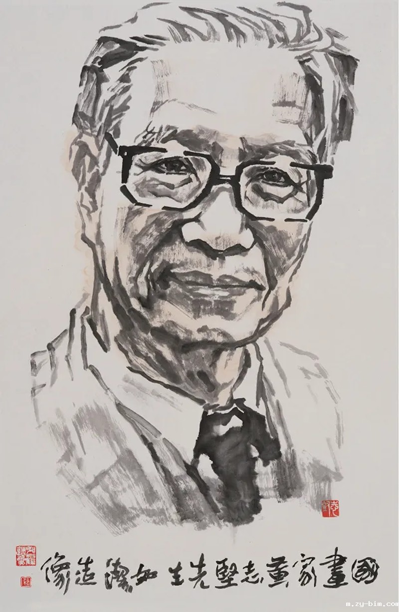 △图十二:梁如洁《国画家—黄志坚先生》 中国画 69cmx46cm 2005年