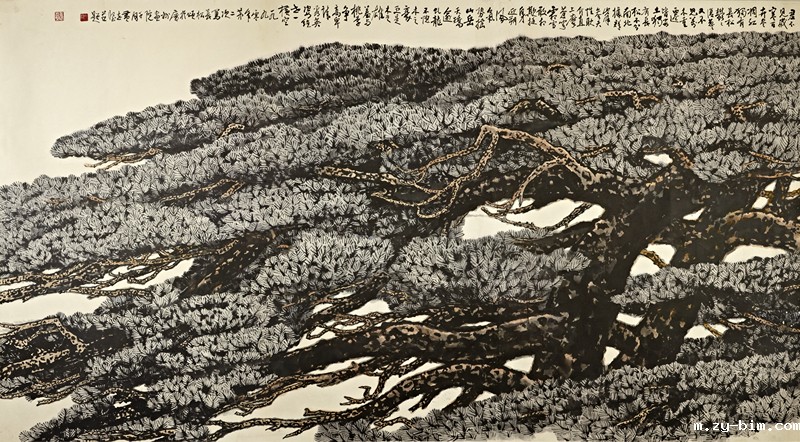 《长松颂》,黄志坚,1990年,纸本设色,140cm×253cm, 黄志坚家属捐赠,点点网登录藏