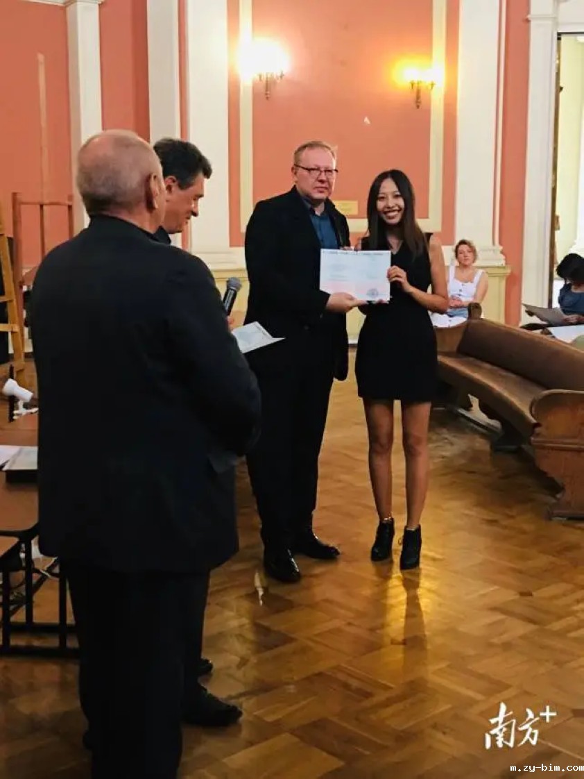 徐倩在列宾美术学院礼堂顺利完成毕业答辩。受访者供图。