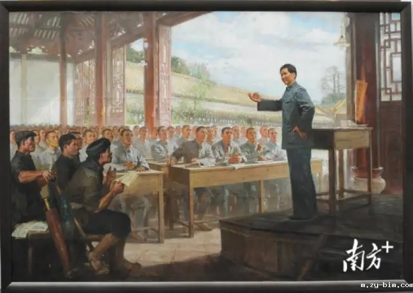 莫述文修复的陈衍宁、汤小铭油画《毛主席讲授〈中国社会各阶级的分析〉》。受访者供图。