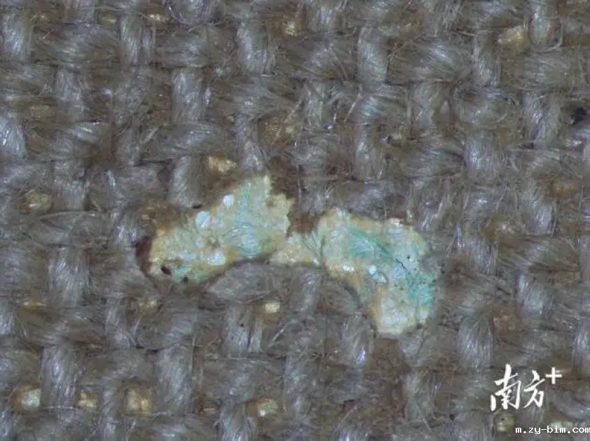 显微镜下汤小铭油画《悠然》上的白蚁洞。受访者供图。