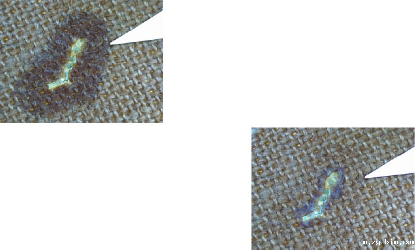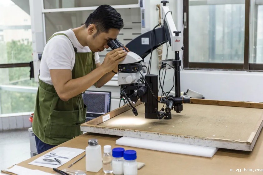 使用高倍显微镜仔细检查作品被蛀蚀情况