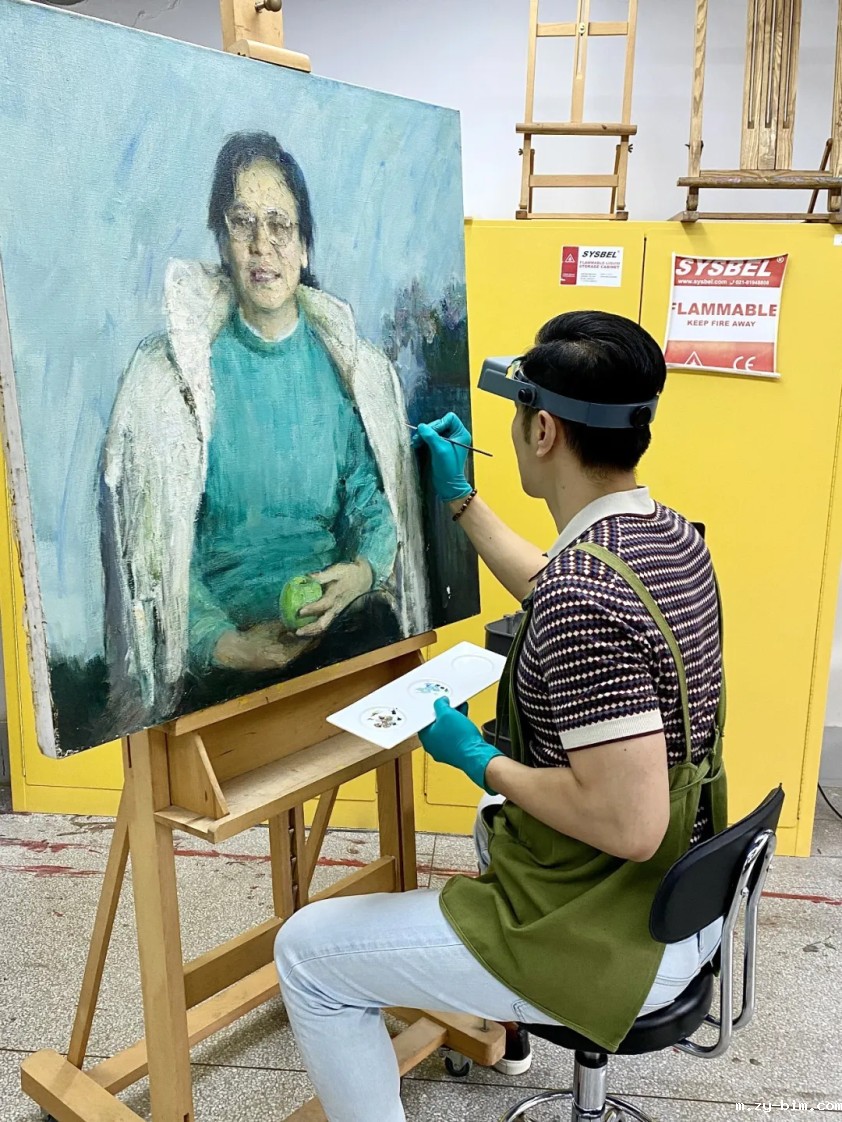 “此次修复的是汤小铭的油画作品《悠然》,是由收藏机构委托点点网登录进行修复保护的。这件作品因为遭到白蚁蛀蚀而导致画布出现多处损毁,我在对作品的损伤进行检查分析之后,采用局部修复的方式,对作品损伤部分进行修复保护。”