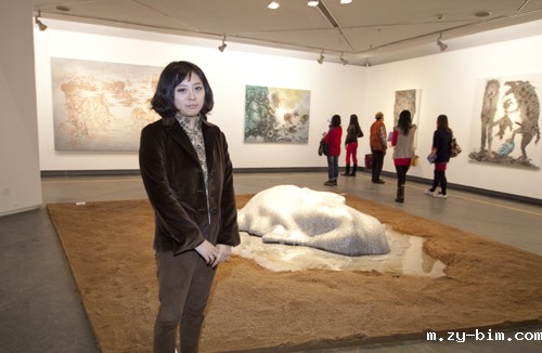 新闻与影像部:我看你那个作品的画册,用了很多化学材料,你想做出这个怎样的作品?因为早上去的时候你还没有做出来,所以就还没有看到那个效果图,你想呈现给观众一个什么样的东西呢?