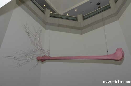 陈小丹:这件作品是一根粉红色的骨头,枝干上是手工做的瓷的梅花。梅花都是寒冷的冬天才开放的,寓意傲雪、坚韧、干净的气质。这个作品是在08冬天开始做的,08年金融危机刚刚开始,当时金融危机来势汹猛,不知道将来会怎么样。当时我可能比较敏感,心情其实蛮不好的。那时候有参加一个展览,做了残竹图和寒梅图,借用岁寒三友的坚韧,鼓励一下大家和自己,这个作品其实也展出过好几次了,但是每一次给予不同的空间,重新布置,又成为一个新作品。