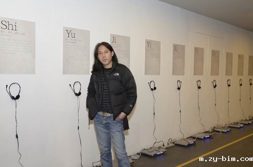 展出:将十篇文章的同音字的汉语拼音拉丁字母列印纸上,装框,挂墙上。其下面分别放置十个iPod Shuffle(Mp3)播放器、 喇叭音响,播放该篇文章的朗读声音。