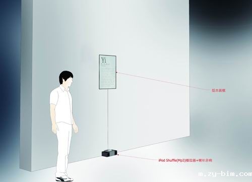 文章朗读声音分别用10个iPod Shuffle播放 (音响设备可放置在不同的地方,或者放置在隐蔽的人眼不及的地方)