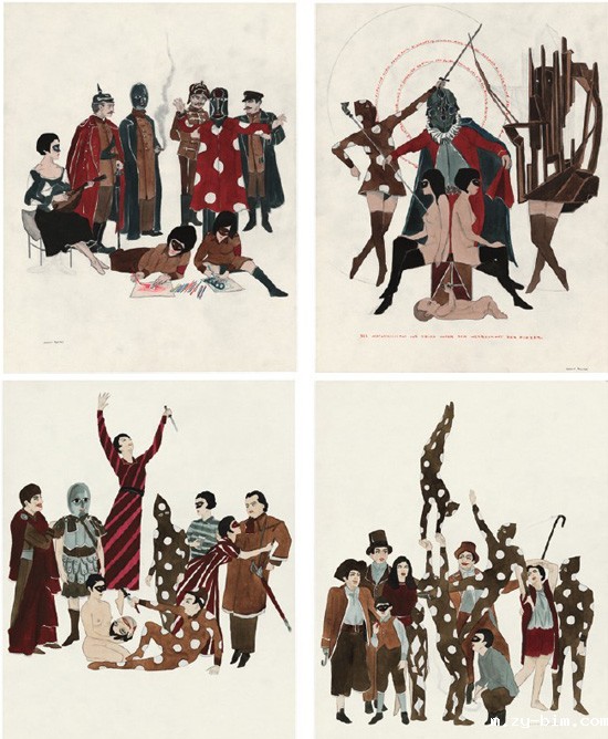 魔鬼,舞者和醉鬼,纸本墨和树胶水彩,35.6×27.9 cm,2011鸣谢纽约 David Zwirner,