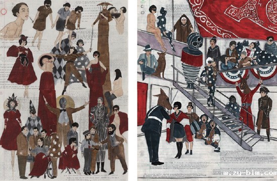 马塞尔•扎马是一个“非主流”的插画家,以创作色彩独特的小幅水彩画闻名,同时也创作雕塑、短片、透视画等。他的绘本也同样地“非主流”。读者拿到的不是一本普通的出版物,而可能是带有声音、视频、立体绘画的一个大盒子。马塞尔•扎马的创作灵感主要来自梦境和生活中的所见所闻,风格受到漫画故事和因纽特人艺术风格的影响。他的大幅作品多是描绘场景,小幅作品则是描述故事,这些作品中常常出现一些荒诞的角色,它们可能是人类、动物、树木,也可能是各种物种的杂交体。乍看之下,这些作品给人儿童般纯真的感觉,但在进一步审视之后,就会发现它们揭示了成年世界中黑暗、阴险的一面,给人奇怪而熟悉的感觉。在颜色上,马塞尔•扎马特别喜欢使用暗红色、淡棕色、军绿色、灰色等暗淡的色彩。值得一提的是,他偶然发现蜜糖或根汁饮料干了之后会留下好看的淡棕色,此后便开始寻找和使用接近这种感觉的色彩进行创作。